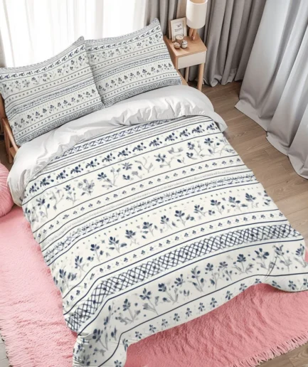 Full Duvet Cover Set – Striped Floral Bedding with Pillowcases