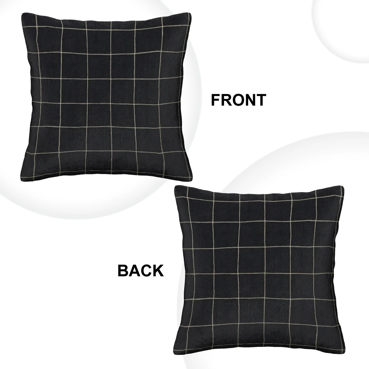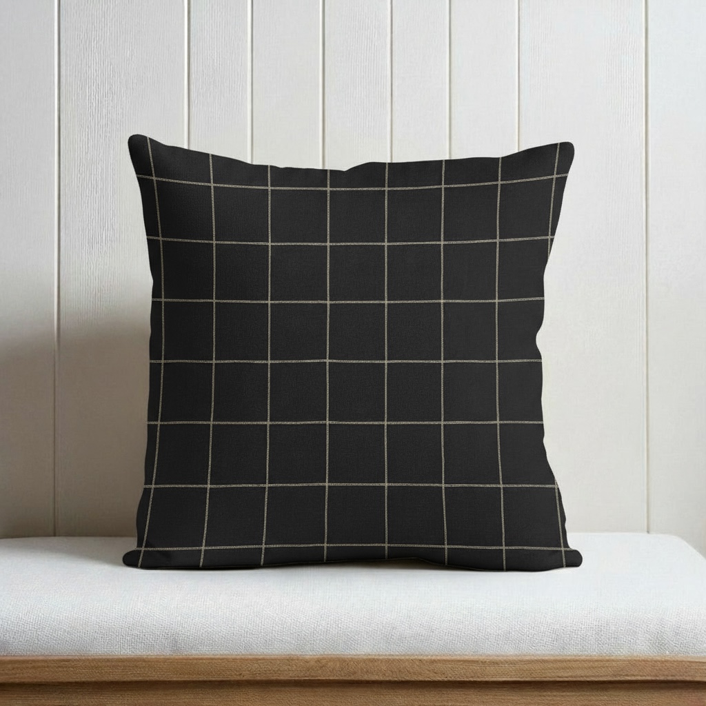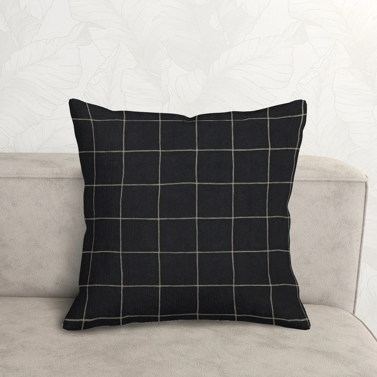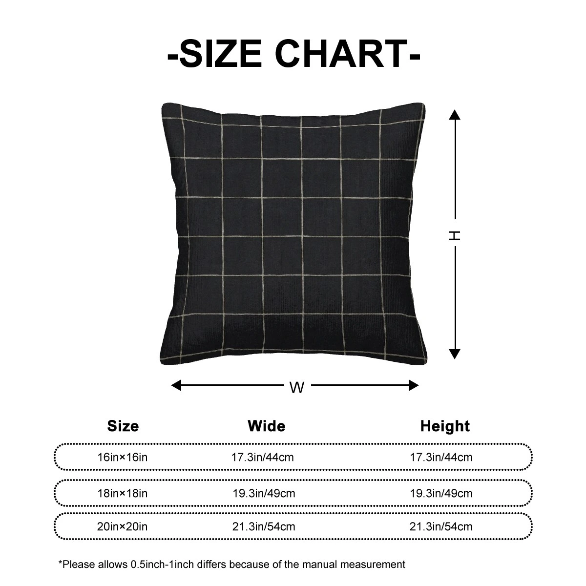 The cover features a modern black base with minimalist beige grid lines, adding a touch of elegance and sophistication to any décor. The invisible edge zipper ensures a seamless finish, while the included pillow core provides comfort and fullness.