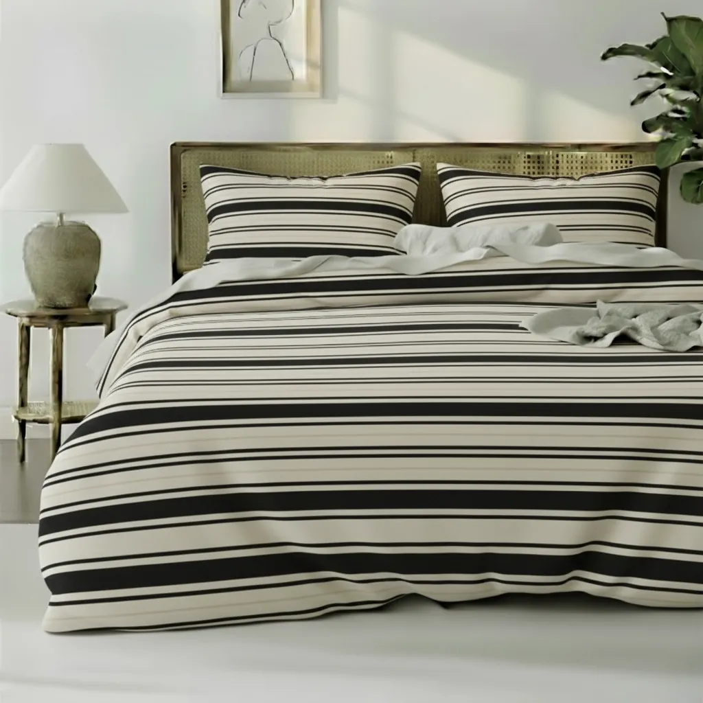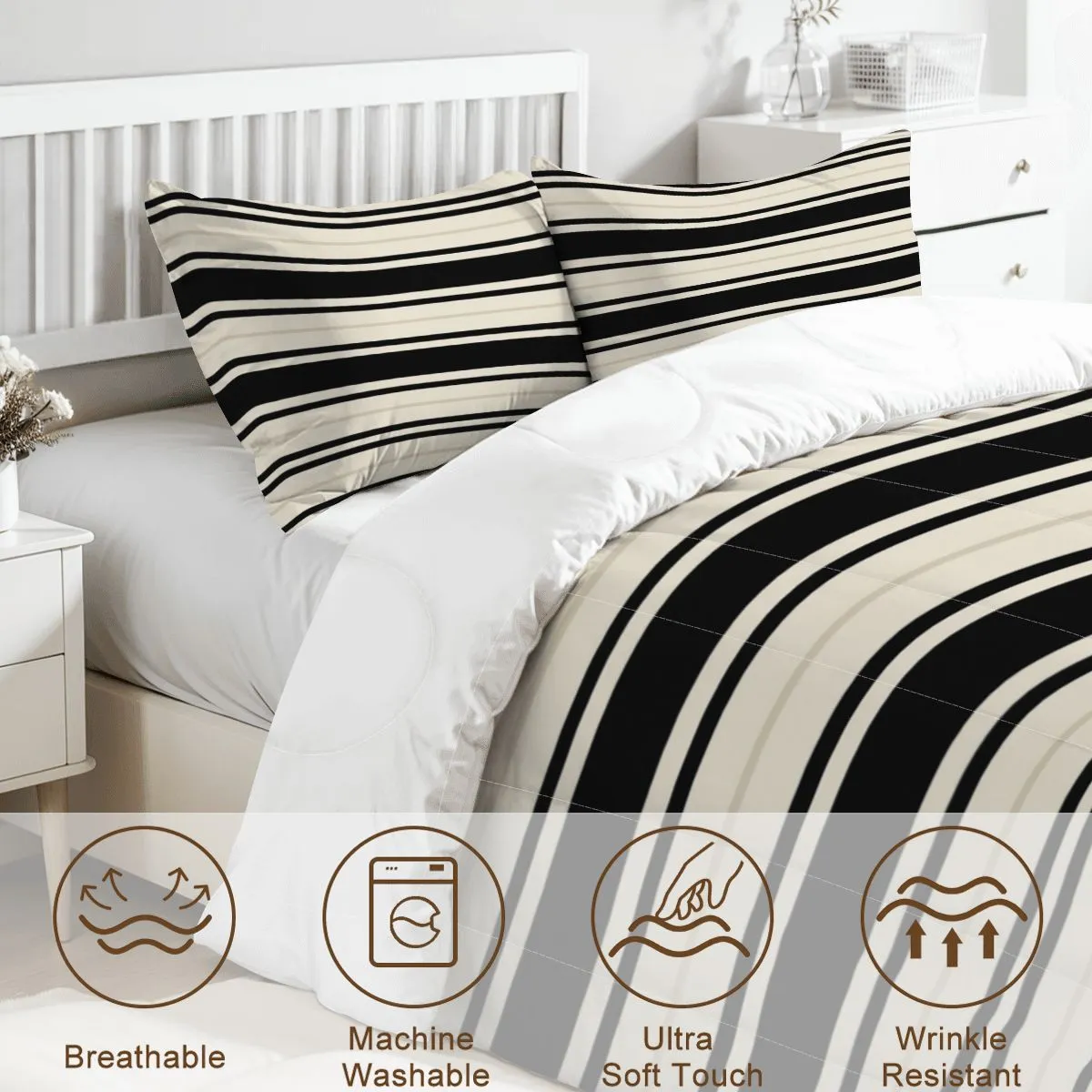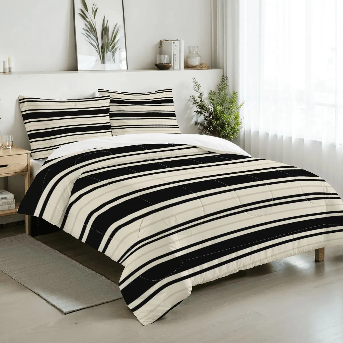 Add bold sophistication and modern comfort to your bedroom with this Black & Cream Striped Full Comforter Set. Designed for both style and relaxation, this ultra-soft 3-piece bedding set features a visually striking striped design in timeless neutral tones, making it the perfect addition to any contemporary or minimalist interior.