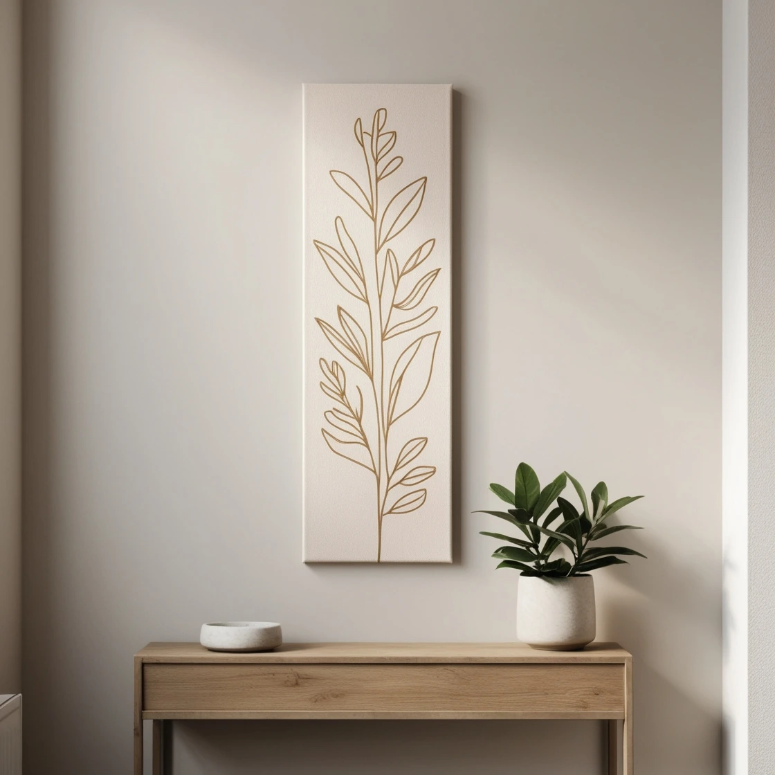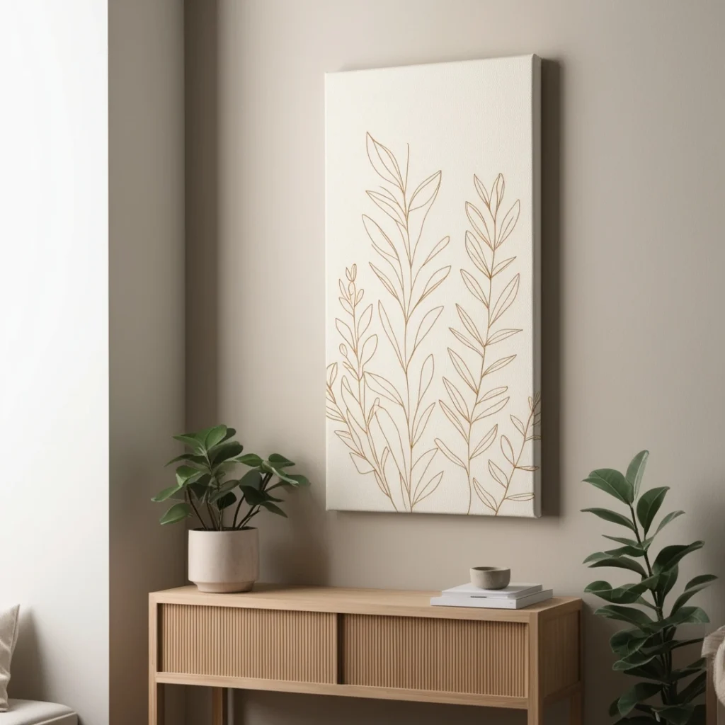 💡 Try: A botanical line art print in soft beige tones for bedrooms or entryways.